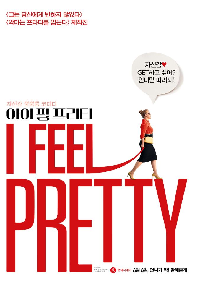 2018년 6월 6일 개봉한 미국 코미디 영화 '아이필 프리티'. '에비 콘(Abby Kohn)'과 '마크 실버스테인(Marc Silverstein)' 감독, 110분 러닝타임의 15세 관람가 (PG-13) 영화이다. 한국에서도 코미디 장르로 많은 사랑을 받은 영화로, 네이버 평점 9.03점의 아주 높은 점수를 받았다. 이 영화는 자존감이 바닥이면서 스스로 뚱뚱하고 못생겼다고 생각하던 주인공 '에이미 슈머 (르네 베넷 역)'가 어느 날 갑자기 머리를 다치고 난 후 자신이 예뻐 보이기 시작하면서 자존감을 되찾아 당당함을 가지고 자신이 원하는 기회를 쟁취하는 스토리이다. 영화의 또 다른 주연 '미셀 윌리엄스 (에이버리 클레어 역)', 조연으로 '로리 스코벨 (에단 역)', '톰 호퍼 (그랜트 역)', '로렌 허튼 (릴리 역)' 등이 있다.