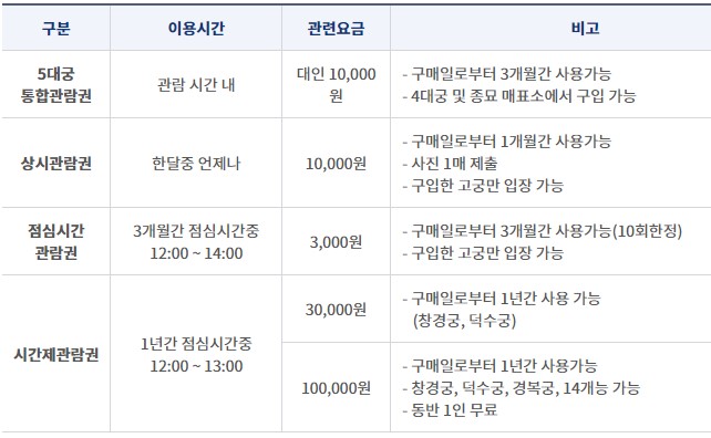 ※ 창경궁, 창덕궁 연계관람 가능 (별도 관람권 구입)