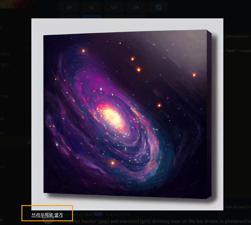 채팅창에서는 수많은 사람들이 그림을 생성하기 때문에 나의 그림을 찾기가 힘들 수 있습니다.